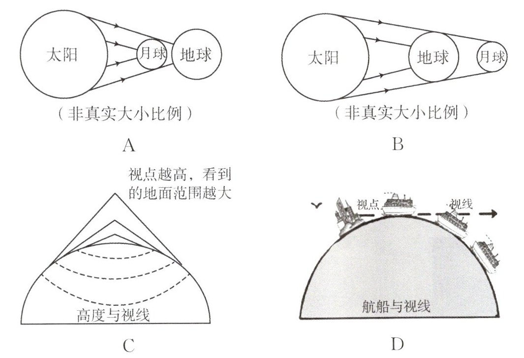 人类认识地球形状经历了漫长的过程,图1、图2示意人类认识地球形状的两个阶段。读图,完成1~2题。