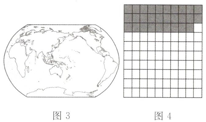3. 粘贴:把剪下的陆地和海洋进一步剪成小方格并依次粘贴到方格纸上,见图4。