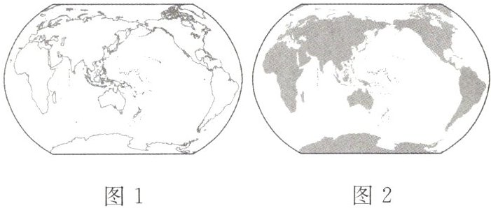 1. 涂色:在图1中给陆地涂上深灰色,给海洋涂上浅灰色。