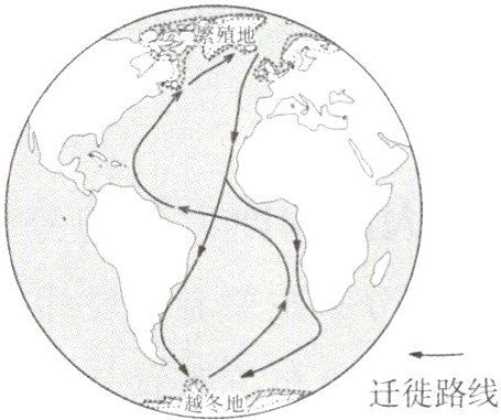 1. 北极燕鸥繁殖地和越冬地分别为(