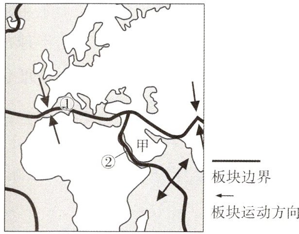 (4) 图中①②③④四地地震频发,从地理位置上看,②③位于______(填火山、地震带名称)地带;①④位于______(填火山、地震带名称)地带,这些地带地壳比较活跃的共同原因是______。