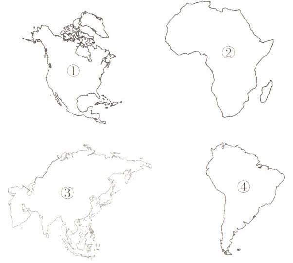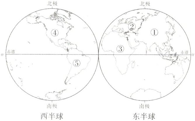 2. 下列关于图中序号与大洲名称及其半球位置对应正确的是(