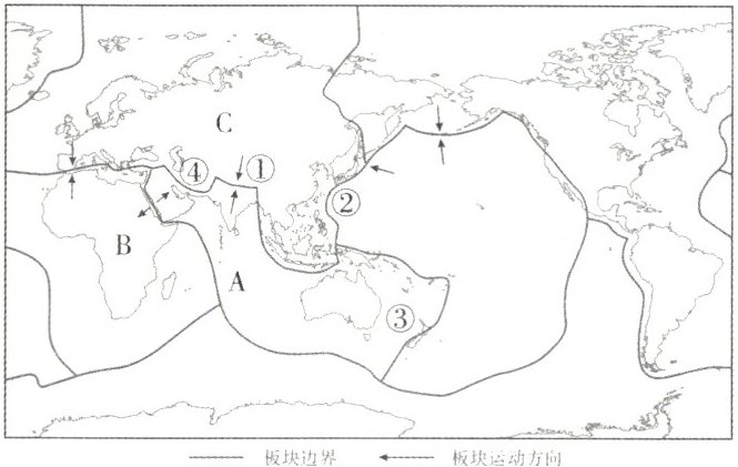 (2) A板块与C板块交界处分布着世界上著名的______山脉。