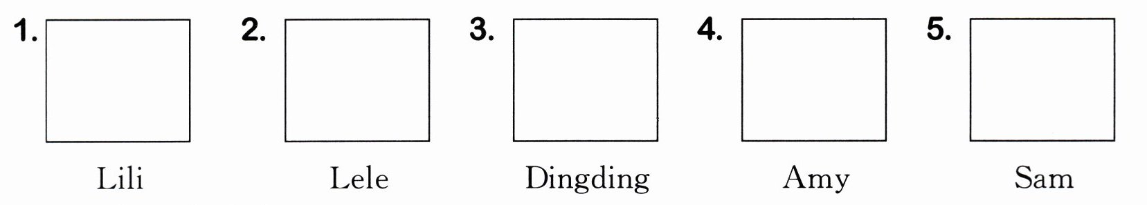 五、[情境题]美术课上,Ms Li给大家布置了绘画任务,请根据Ms Li的要求画一画,再涂一涂。