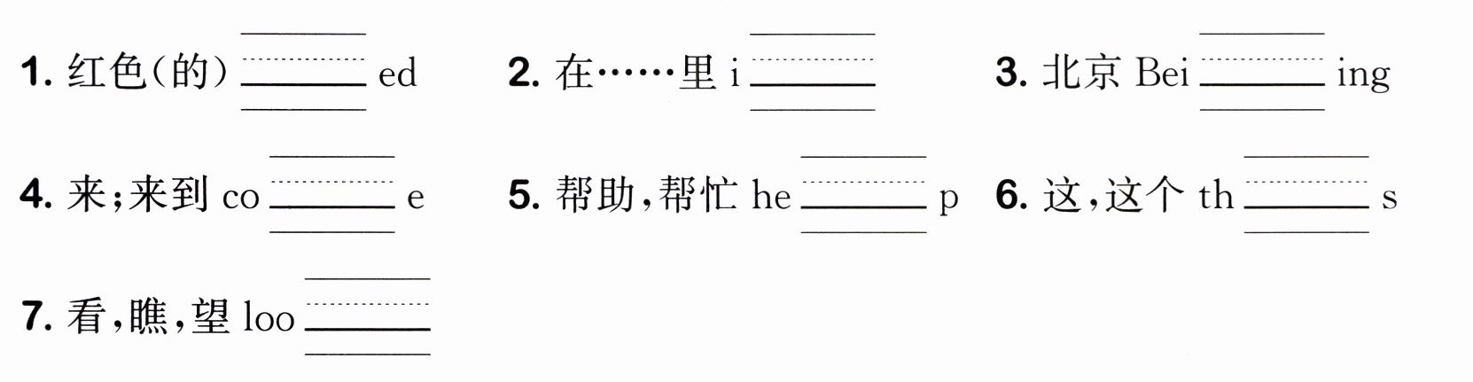 一、根据中文提示,写出单词所缺字母的大小写形式。