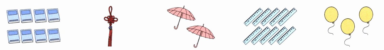 Hello, I'm Amy. I'm happy today. Look! I have many new things. I have ten rulers. They are on the desk(书桌). I have eight blue books. They are my good friends. I have three balloons. They are yellow. I have two little umbrellas. They are pink. I have only one Chinese knot. It's big. How many new things?