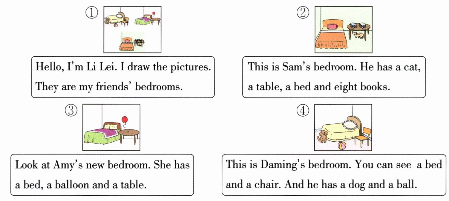 ) 4. What is in Daming’s bedroom? A. A bed, a chair, a dog and a ball.