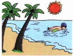 1. hot 2. go swimming 3. eat ice cream 4. going out to walk with an umbrella