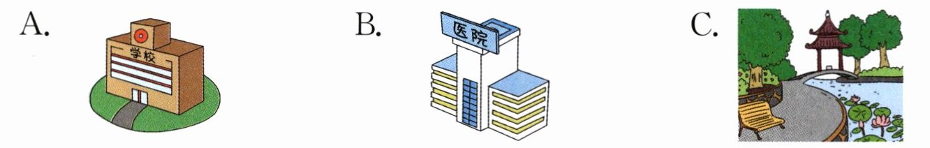 )3. — Where is the hospital? — Turn right and go straight on.(