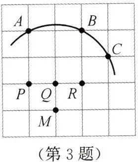 3. 如图,在 $ 5 × 5 $ 正方形网格中,一条圆弧经过 $ A $,$ B $,$ C $ 三点,那么这条圆弧所在圆的圆心是(