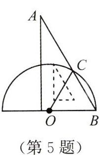 5. 将一个含有 $ 60^{\circ} $ 角的三角板,按如图的方式摆放在半圆形纸片上,点 $ O $ 为圆心,则 $ \angle ACO $ 的度数为(
