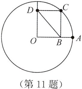 11. 如图,$ OA $ 是 $ \odot O $ 的半径,$ B $ 为 $ OA $ 上一点(且不与点 $ O $,$ A $ 重合),过点 $ B $ 作 $ OA $ 的垂线交 $ \odot O $ 于点 $ C $. 以 $ OB $,$ BC $ 为边作矩形 $ OBCD $,连接 $ BD $. 若 $ CD = 6 $,$ BC = 8 $,则 $ AB $ =