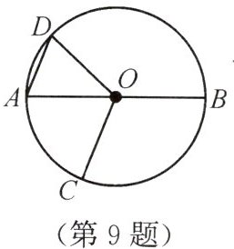 9. 如图,$ AB $ 是 $ \odot O $ 的直径,点 $ C $,$ D $ 在 $ \odot O $ 上,且点 $ C $,$ D $ 在 $ AB $ 的异侧,连接 $ AD $,$ OD $,$ OC $. 若 $ \angle AOC = 70^{\circ} $,且 $ AD // OC $,则 $ \angle AOD $ 的度数为(