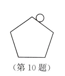10. 如图,一个小圆沿着一个五边形的边滚动,如果五边形的各边长都和小圆的周长相等,那么当小圆滚动到原来位置时,小圆自身滚动的圈数是(