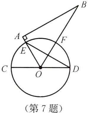 7. 如图,CD是$\odot O$的直径,将一把直角三角尺的$60^{\circ}$角的顶点与圆心O重合,角的两边分别与$\odot O$相交于E,F两点,点F是$\overset{\frown}{ED}$的中点,$\odot O$的半径是4,则弦ED的长为(