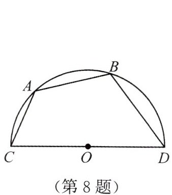 8. 如图,半径为1的半圆O上有两个动点A,B,若$AB = 1$,则四边形ABDC的面积最大值为(