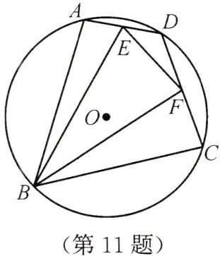 11. 如图,在 $\odot O$ 内接四边形 $ABCD$ 中,$\angle ABC = 60^{\circ}$,$AB = BC = 6$,$E$,$F$ 分别是 $AD$,$CD$ 的中点,连接 $BE$,$BF$,$EF$。若四边形 $ABCD$ 的面积为 $11\sqrt{3}$,则 $\triangle BEF$ 的面积为