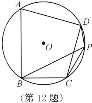 12. 如图,四边形 $ABCD$ 内接于 $\odot O$,$\angle D = 90^{\circ}$,$P$ 为 $\overset{\frown}{CD}$ 上一动点(不与点 $C$,$D$ 重合)。