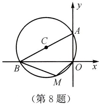 8. 如图,在平面直角坐标系中,$\odot C$ 过原点,且与两坐标轴分别交于点 $A$,$B$,点 $A$ 的坐标为 $(0,3)$,$M$ 是第三象限内 $\overset{\frown}{OB}$ 上一点,$\angle BMO = 120^{\circ}$,则 $\odot C$ 的半径为(