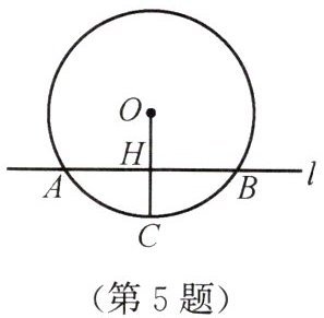 5. 如图,$⊙O的半径OC = 5cm$,直线$l \perp OC$,垂足为$H$,且$l交⊙O于A$,$B$两点,$AB = 8cm$,则$l沿OC$所在直线向下平移