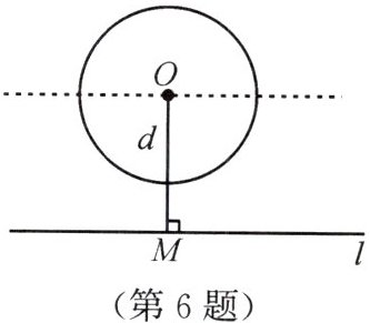 6. 如图,给定一个半径为$2$的圆,圆心$O到水平直线l的距离为d$,即$OM = d$。我们把圆上到直线$l的距离等于1的点的个数记为m$。如当$d = 0$时,$l为经过圆心O$的一条直线,此时圆上有四个到直线$l的距离等于1$的点,即$m = 4$,由此可知: