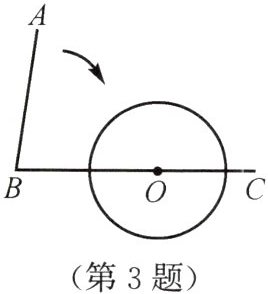 3. 如图,$\angle ABC = 80^{\circ}$,$O为射线BC$上一点,以点$O$为圆心,$\frac{1}{2}OB长为半径作⊙O$,要使射线$BA与⊙O$相切,应将射线$BA绕点B$按顺时针方向旋转(