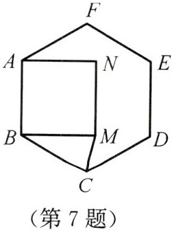 7. 如图,以正六边形 $ ABCDEF $ 的边 $ AB $ 为边,在正六边形内作正方形 $ ABMN $,连接 $ MC $。求 $ \angle BCM $ 的大小。