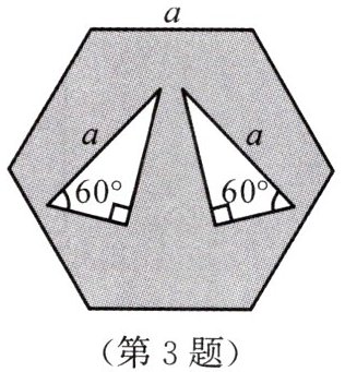 3. 如图,边长为 $ a $ 的正六边形内有两个斜边长为 $ a $,有一个角是 $ 60^{\circ} $ 的直角三角形,则 $ \frac{S_{阴影}}{S_{空白}} $ 的值为(