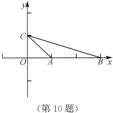 10. 如图,点 $ A $, $ B $, $ C $ 在直角坐标系中的坐标为 $ A(1,0) $, $ B(3,0) $, $ C(0,1) $,则 $ \triangle ABC $ 绕 $ y $ 轴旋转一周所得几何体的表面积为
