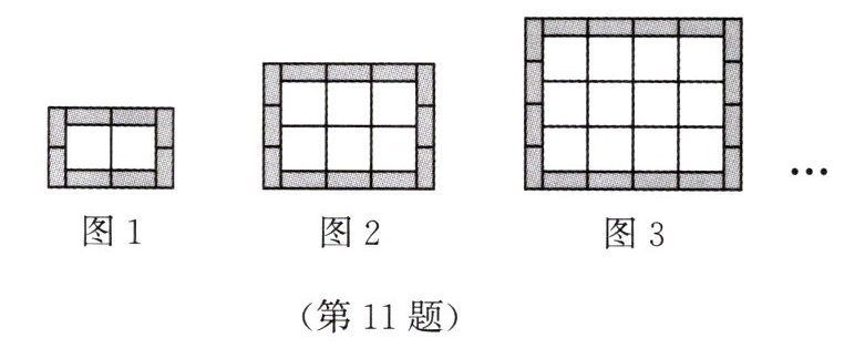 11. 如图,中间用相同的白色正方形瓷砖,四周用相同的黑色长方形瓷砖铺设矩形地面,请观察图形并解答下列问题.
