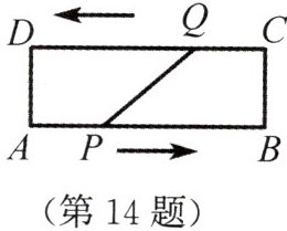 14. 如图,在矩形 $ ABCD $ 中,$ AB = 6 cm $,$ AD = 2 cm $,动点 $ P,Q $ 分别从点 $ A,C $ 同时出发,点 $ P $ 以 $ 2 cm/s $ 的速度向终点 $ B $ 移动,点 $ Q $ 以 $ 1 cm/s $ 的速度向点 $ D $ 移动,当有一点到达终点时,另一点也停止运动.设运动的时间为 $ t(s) $,问: