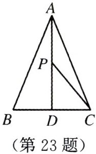 23. 如图,在$\triangle ABC$中,$AB = AC = 13cm$,$BC = 10cm$,$AD\perp BC于点D$,动点$P从点A出发以1cm/s的速度沿线段AD向终点D$运动.设动点运动时间为$t(s)$.