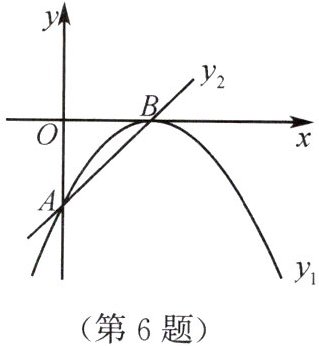 6. 如图,二次函数 $ y_1 = a(x - 2)^2 $ 的图象与直线 $ y_2 $ 交于 $ A(0, -1) $,$ B(2, 0) $ 两点。