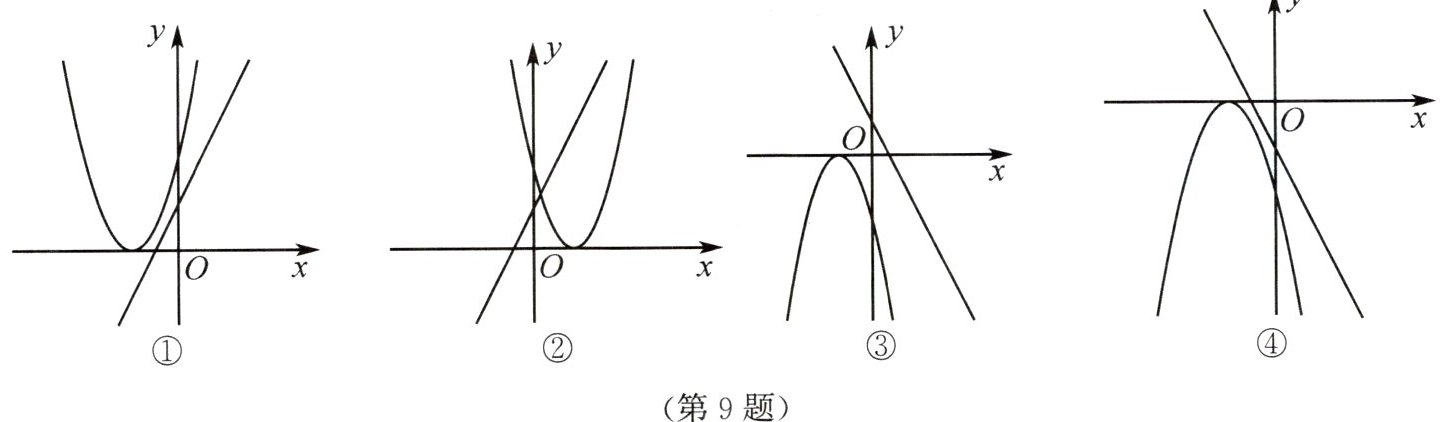 9. 一次函数 $ y = ax + b $ 与二次函数 $ y = a(x + b)^2 $ 在同一直角坐标系中的图象可能是