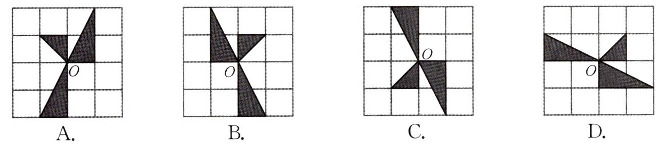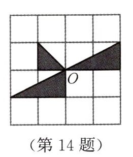 14. 如图,将方格纸中的图形绕点 $ O $ 逆时针旋转 $ 90^{\circ} $ 后得到的图形是(