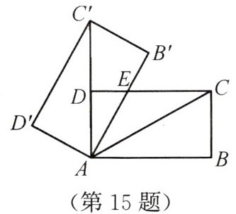 15. 【抚顺】如图,将矩形 $ ABCD $ 绕点 $ A $ 旋转至矩形 $ AB'C'D' $ 位置,此时 $ AC $ 的中点恰好与点 $ D $ 重合,$ AB' $ 交 $ CD $ 于点 $ E $。若 $ AB = 3 $,则 $ \triangle AEC $ 的面积为(