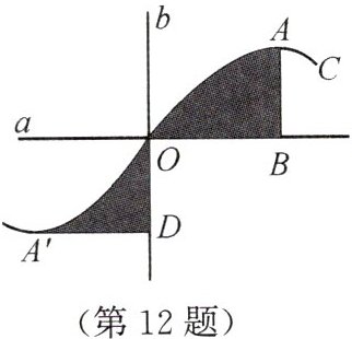 12. 【乐山】如图,直线 $a$,$b$ 垂直相交于点 $O$,曲线 $C$ 关于点 $O$ 成中心对称,点 $A$ 的对称点是点 $A'$,$AB\perp a$ 于点 $B$,$A'D\perp b$ 于点 $D$. 若 $OB = 3$,$OD = 2$,则阴影部分的面积之和为