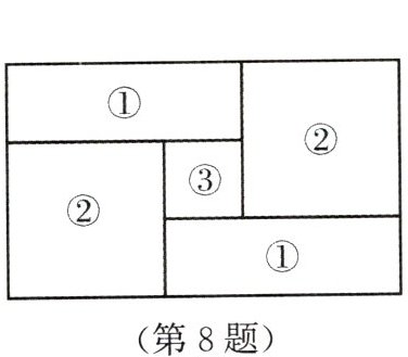 8. 如图,小明家的住房平面图呈长方形,被分割成 $3$ 个正方形和 $2$ 个长方形后仍是中心对称图形。若只知道原住房平面图长方形的周长,则分割后不用测量就能知道周长的图形的标号为(
