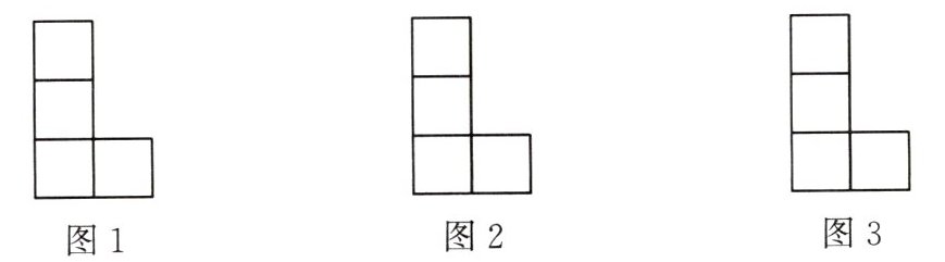 (1)在图 $1$ 中添加 $1$ 个正方形,使它成为轴对称图形(不能是中心对称图形)。