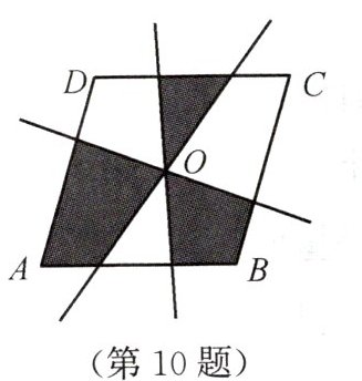 10. 如图,四边形 $ABCD$ 是菱形,$O$ 是两条对角线的交点,过点 $O$ 的三条直线将菱形分成阴影和空白部分。当菱形的两条对角线的长分别为 $6$ 和 $8$ 时,阴影部分的面积为