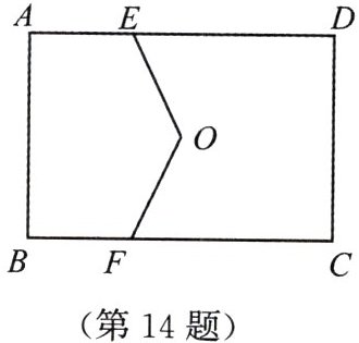 14. 【陕西】如图,在矩形 $ABCD$ 中,$AB = 4$,$BC = 6$,$O$ 是矩形的对称中心,点 $E$,$F$ 分别在边 $AD$,$BC$ 上,连接 $OE$,$OF$,若 $AE = BF = 2$,则 $OE + OF$ 的值为(