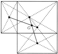 (2)如图,把模板分成两个矩形,连接各自的中心.把模板重新分成两个矩形,得到连接各自中心的第二条线段,其交点G为重心.