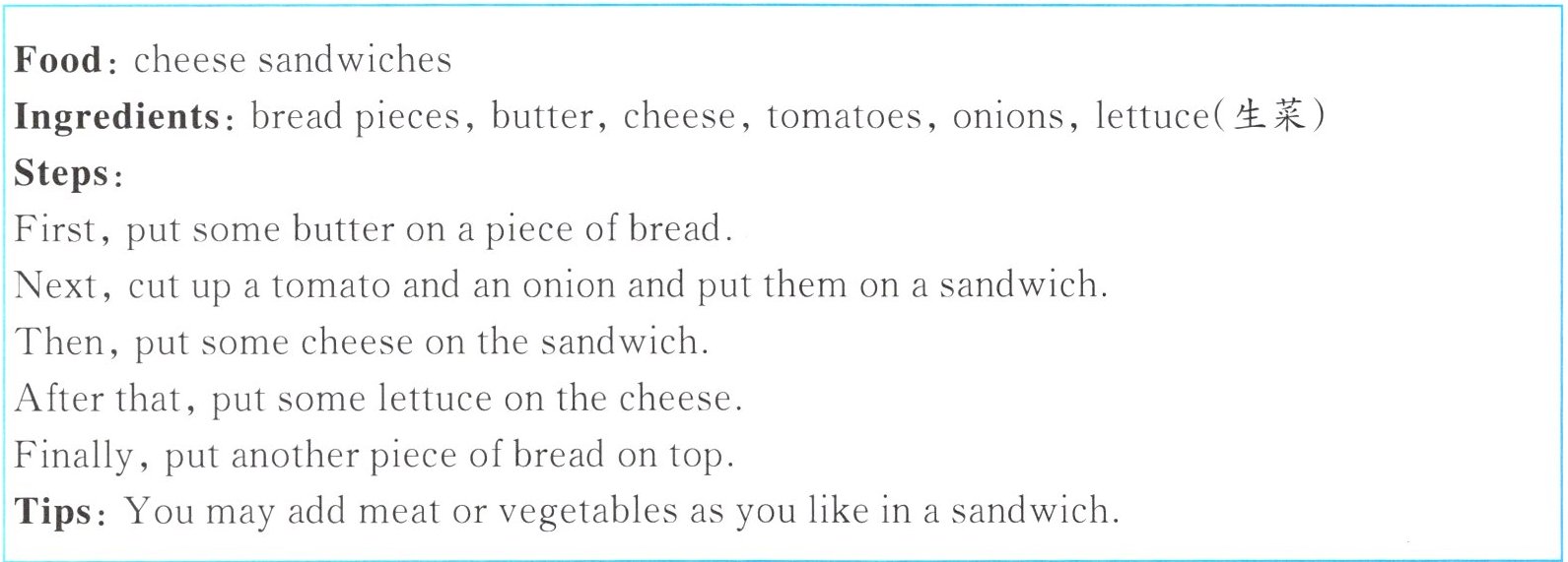 )4. Firstly, you can put some ______ on a piece of bread when making a cheese sandwich.A. tomatoes