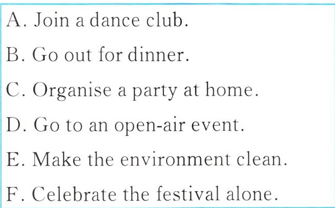 If you want to avoid the crowd(人群), you can just stay at home and relax yourself. You can watch TV all night. You can also watch a movie or read a book at home.