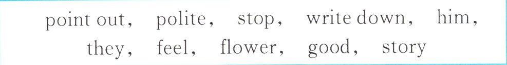 1. stories 2. better 3. them 4. pointed out 5. flowers 6. wrote down 7. stopped 8. politely 9. felt 10. himself