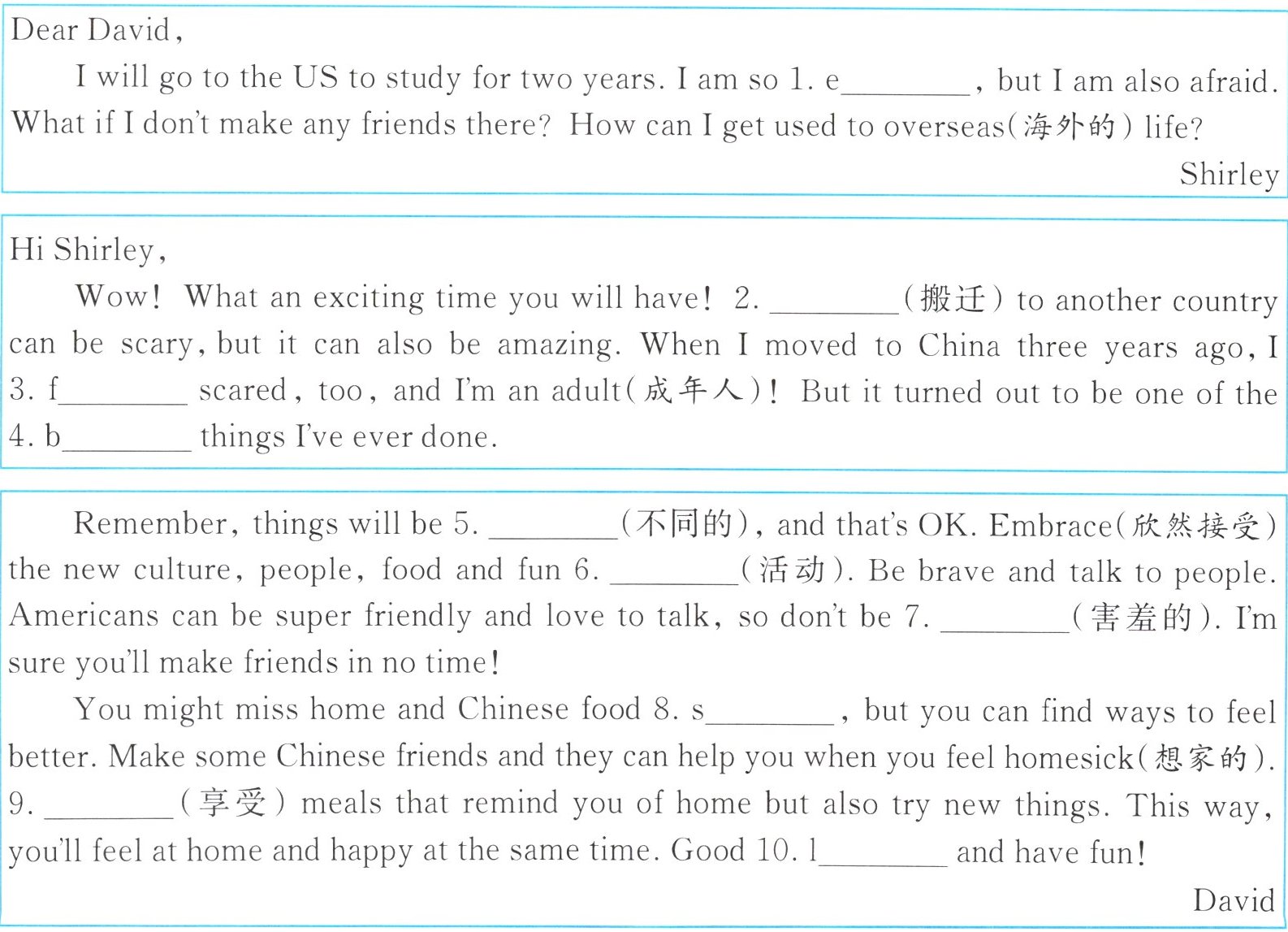 1. excited 2. Moving 3. felt 4. best 5. different 6. activities 7. shy 8. sometimes 9. Enjoy 10. luck
