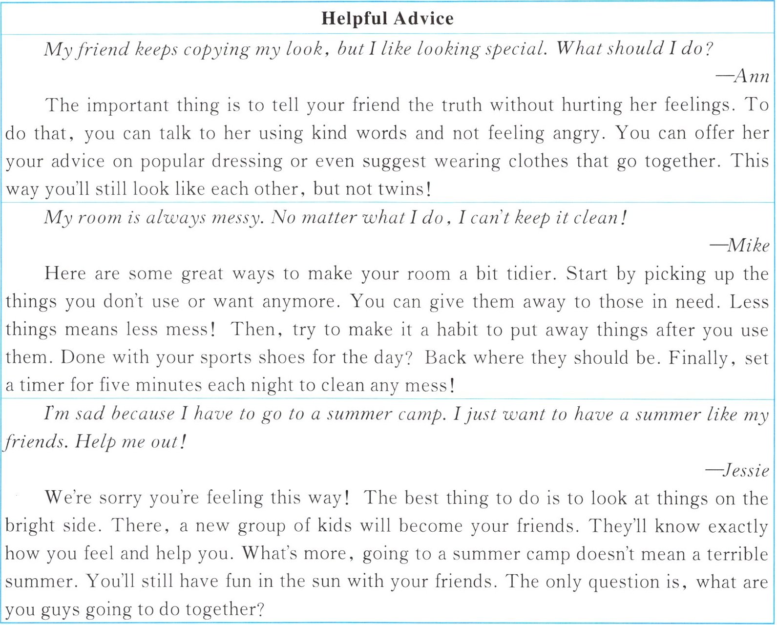 )3. What advice does the writer give to Jessie?A. “Tell your parents how you feel.”