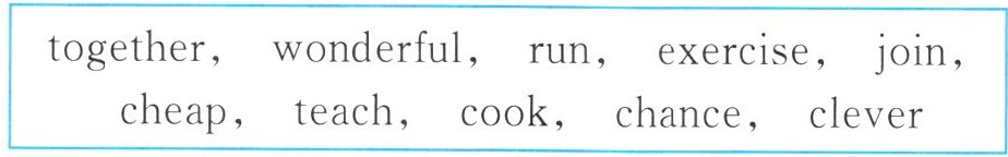 1. clever 2. chance 3. cooking 4. has taught 5. cheaper 6. join 7. exercising 8. to run 9. wonderful 10. together