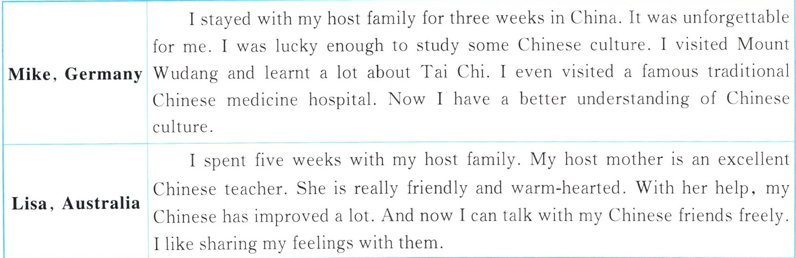 )2. Who stayed in China for the shortest time?A. Lisa.