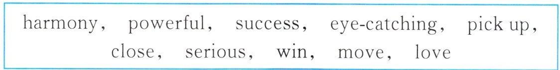 1. powerful 2. successful 3. loving 4. move 5. To win 6. close 7. picking up 8. harmonious 9. seriously 10. eye-catching